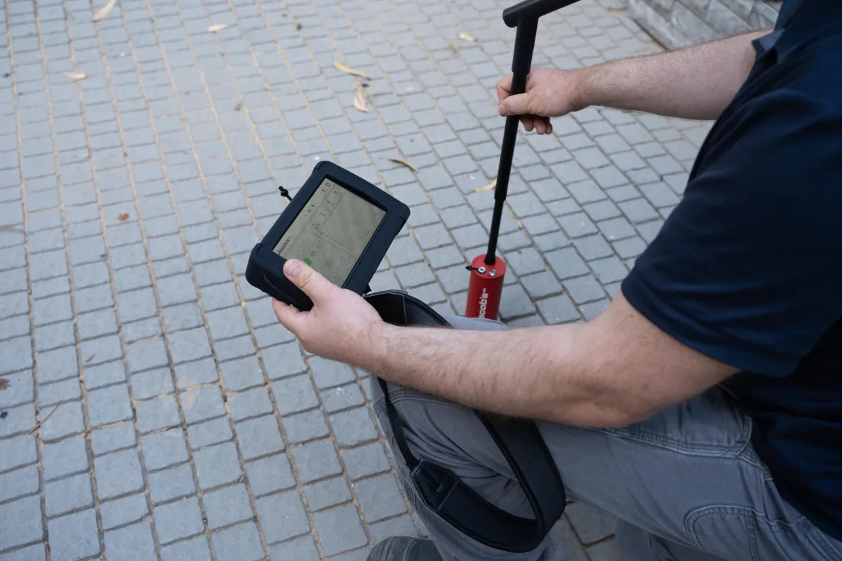 The technology is based on the detection of a gas, referred to as “hydrogen tracer gas.” This gas is a pre-made blend of hydrogen (5%) and nitrogen (95%). It is injected into the system that is suspected of leaking, using a pressure cylinder and a regulator. The gas escapes the system through the leak and is identified by a sensitive hydrogen sensor in SNIFFER430. The detection application is somewhat similar to using a metal detector; the operator moves it side to side, close to the ground, and watches the display to identify the area with the highest concentration of gas, indicating the location of the leak. It really is that simple.